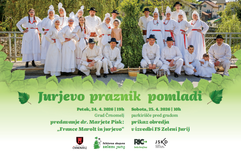 V soboto, 25. 4. , ob 10. uri na parkirišču pred Gradom Črnomelj pa vabljeni na druženje, kjer bo domača folklorna skupina Zeleni Jurij Črnomelj predstavila obredje Zelenega Jurija in črnomaljsko obredje. Predstavile se bodo tudi folklorne skupine: OŠ Loka Črnomelj, OŠ Mirana Jarca Črnomelj in VDC Črnomelj. Hkrati bo potekala delavnica izdelave pastirskih piščali in rogov.