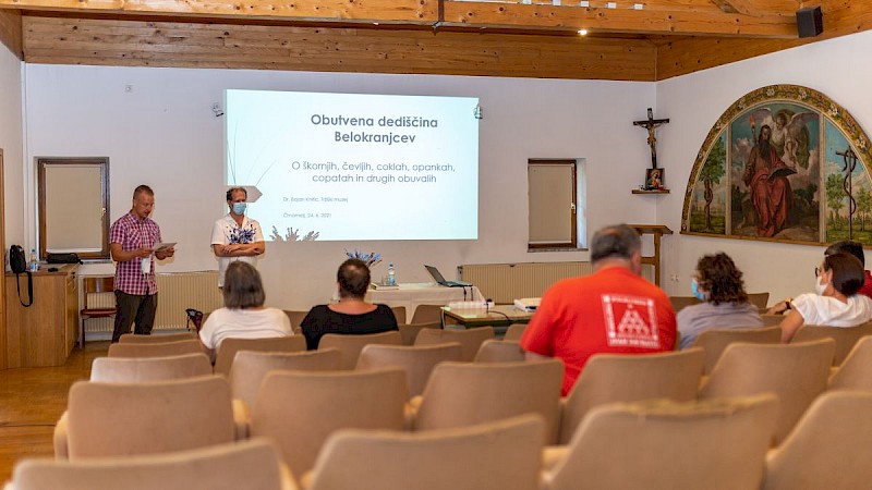 V Pastoralnem centru je dr. Bojan Knific predaval o obutveni dediščini Belokranjcev in njenem poustvarjanju v folklornih skupinah. Dr. Knific je kustos v Tržiškem muzeju, avtor številnih knjig in ambasador Občine Tržič, ki je napisal slovensko monografijo o obuvanju, v kateri je predstavil obutveno dediščino na Slovenskem.