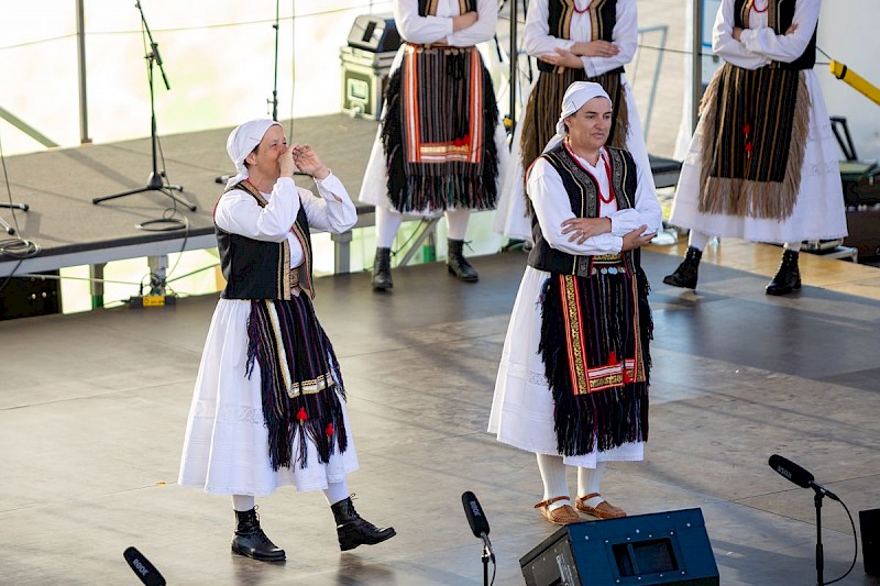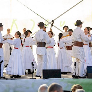 V osrednjem folklornem delu sobotnega festivala pod imenom »Ki za kolo, naj gre z nami v kolo…« so nastopile folklorne skupine – Folklorna skupina Tine Rožanc iz Ljubljane, ki je ena največjih, najbolj prepoznavnih in najstarejših folklornih skupin v Sloveniji, Folklorna skupina Dragatuš, ki z entuziazmom in odgovornostjo že 64 let poustvarja belokranjsko kulturno dediščino ter s terenskimi raziskavami, novimi odrskimi postavitvami in kostumsko podobo v zadnjem desetletju nadgrajuje podobo belokranjskega ljudskega izročila, Metliška folklorna skupina Ivan Navratil, ki pod tem imenom deluje že od 1976 leta in je znana po tem, da na »vuzmski« oz. velikonočni ponedeljek v Metliki vsakoletno zavira kolo ter po točki »Pust«, ki predstavlja pustovanje v Metliki z vsemi značilnimi elementi pustne povorke iz 19. stoletja ter folklorna skupina Srbskega kulturnega društva Novo mesto – podružnica Črnomelj, ki si prizadeva ohranjati nacionalno in kulturno identiteto srbske etnične skupine v Sloveniji ter spodbujati njeno kulturo ter razvoj.