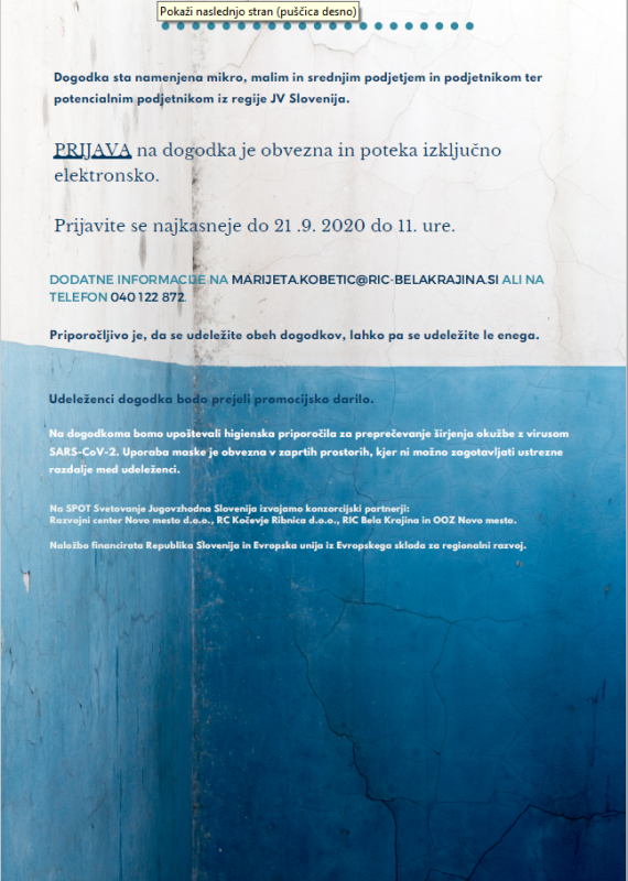 Dogodka sta namenjena mikro, malim in srednje velikim podjetjem in podjetnikom ter potencialnim podjetnikom iz regije JV Slovenija.