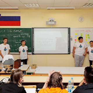 Sobotno jutro se je začelo ustvarjalno in kreativno. Učenci so za začetek dneva in inspiracijo prisluhnili priznanemu podjetniškemu mentorju in strokovnjaku Matiji Goljarju. Poleg zanimivih zgodb so svoje podjetniške veščine in spretnosti razvijali v interaktivni igri Misija nemogoče.