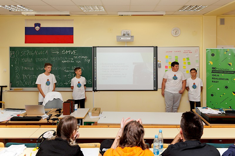 Za zaključek ustvarjalnega podjetniškega vikenda je 5 skupin pred komisijo, ki so jo sestavljali Sanja Hadjur, Matija Goljar, Kristijan Asani in Robert Klobučar, predstavilo svoje poslovne ideje.