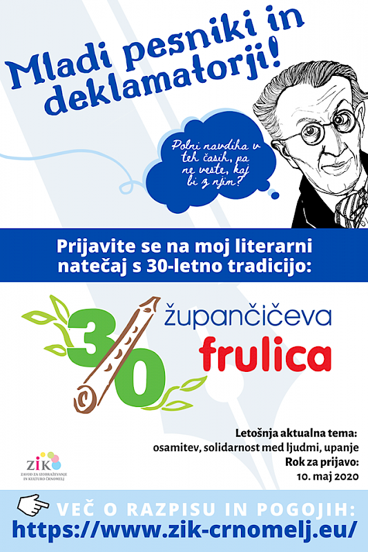 ZIK Črnomelj objavlja RAZPIS za jubilejno 30. Župančičevo frulico!